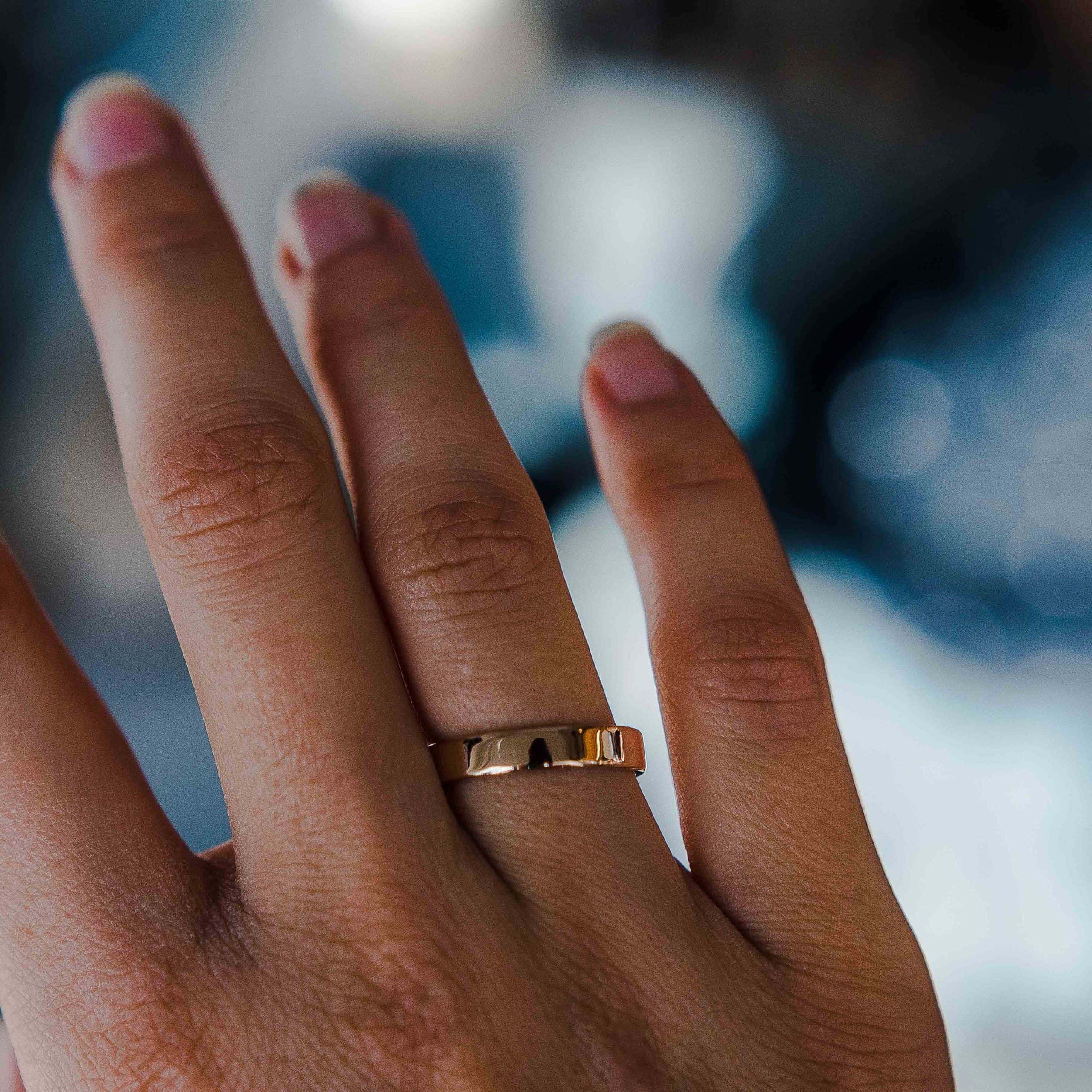Home Rings Wedding bands Flat Gold Wedding Ring | 4mm | Stripe