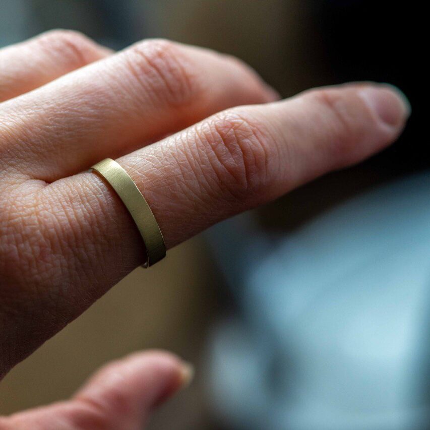 Flat Gold Wedding Ring | 4mm | Stripe