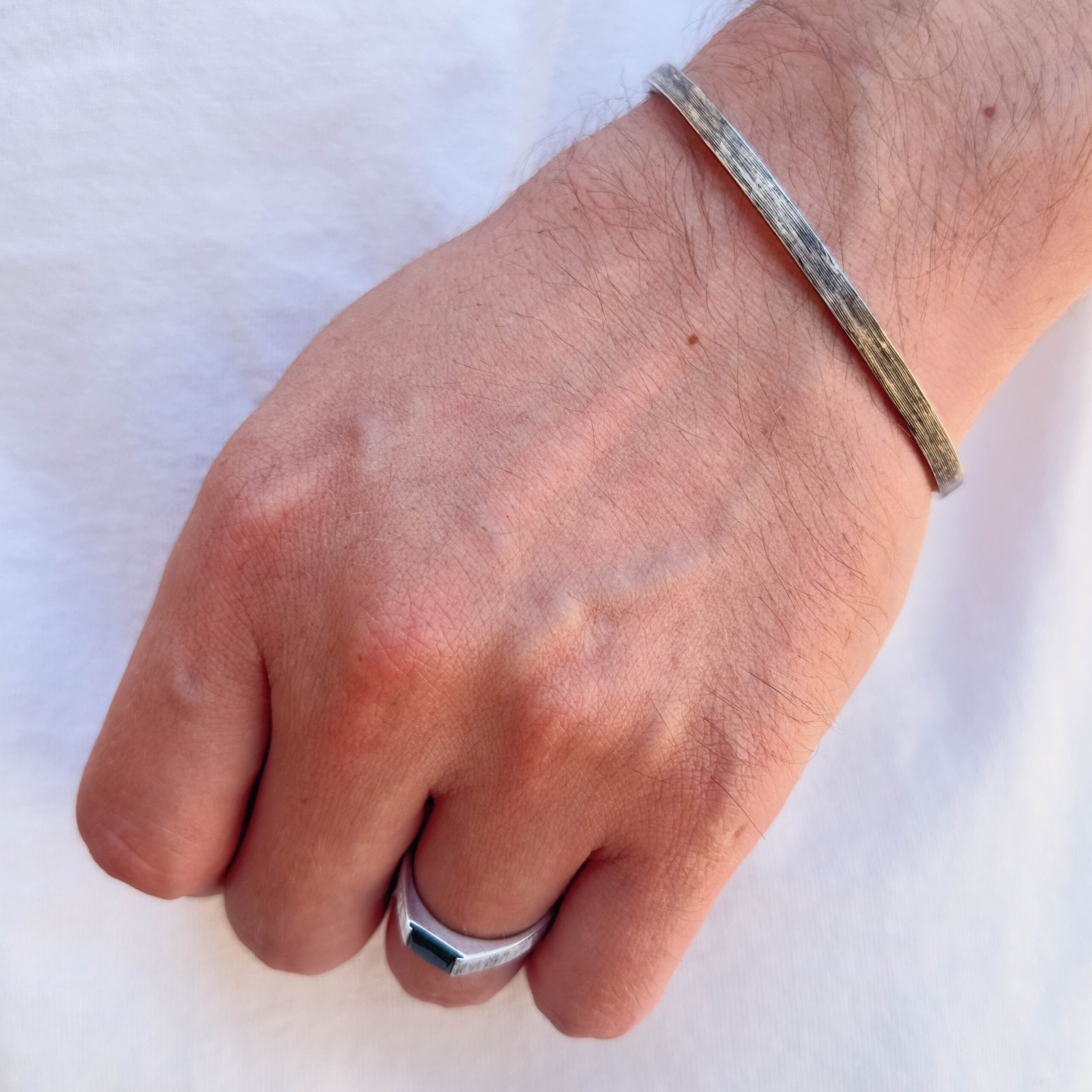 Custom options include other textures, laser or hand engraving—share your ideas, and we’ll provide a custom quote. Durable and timeless, this cuff is a versatile addition to any jewelry collection. ​