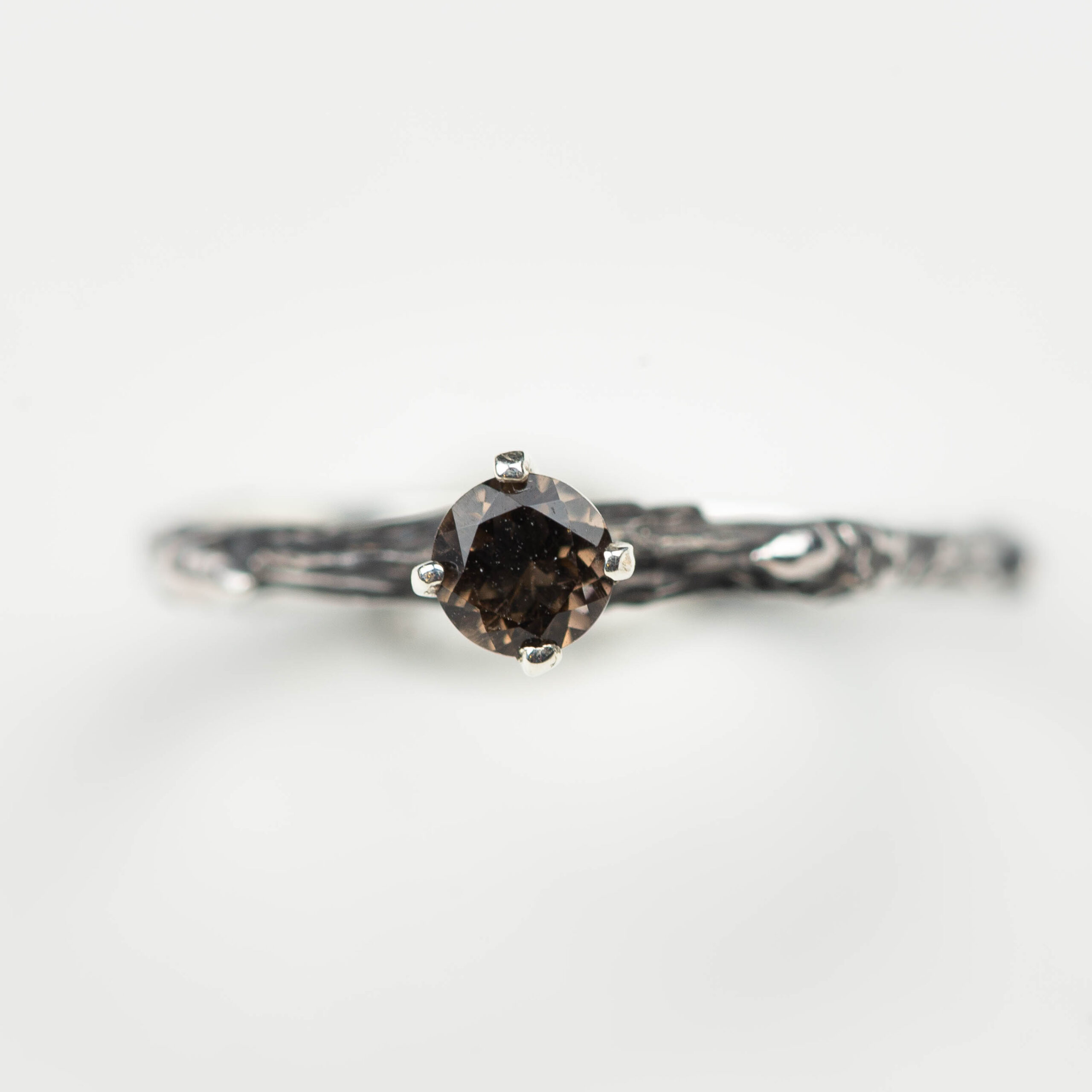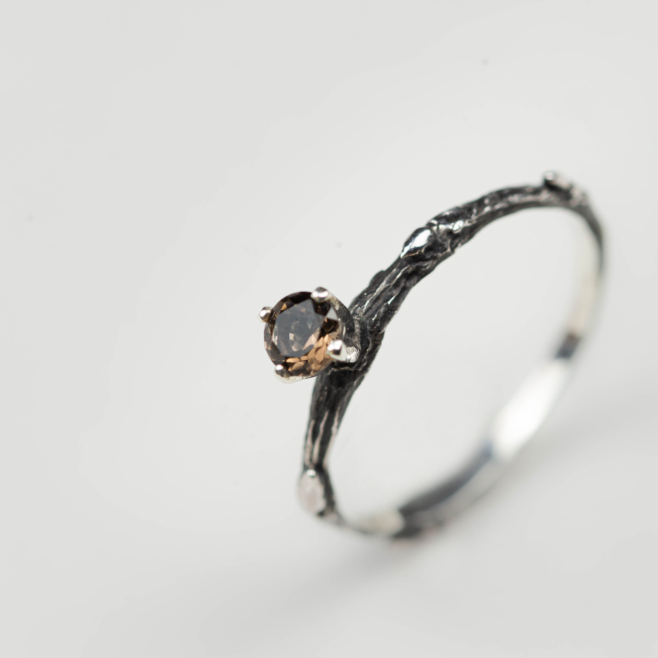 This distinctive ring showcases the rustic charm of oxidized silver, paired with the smoky allure of a smoky quartz gemstone. The darkened silver gives the piece an antique feel, while the deep, translucent hues of the quartz offer a mysterious elegance. It’s a perfect fusion of vintage aesthetics and modern craftsmanship.
