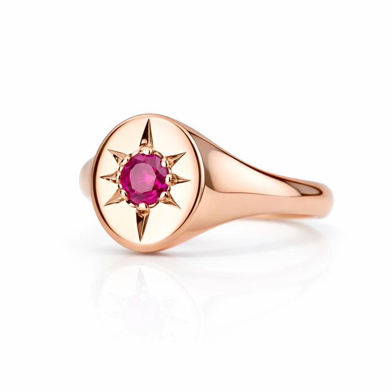 14k Gold Starburst Signet Ring 2mm Stone | Ring builder